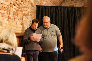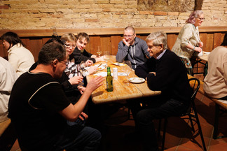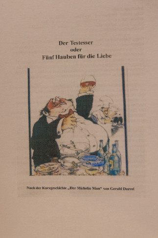 Neujahrsempfang unserer Wohngemeinschaft 1. Nach wenigen Proben standen wir auf den Brettern, die die Welt bedeuten. Wir haben unsere Gäste mit dem Theaterstückt "Der Testesser" überrascht. Zur Freude unseres Publikums gab es viele Highlights und es durfte nicht nur einmal gelacht werden. Jeder spielte mit und gab sein Bestes. Im Anschluß luden wir unsere Gäste zu einem 4-Gängigen Menü ein. Es gab Kürbis - Birnen - Ingwersuppe, Pilzpastete, Coq au vin und zur Jahreszeit passend Spekulatiusparfait. Natürlich alles von uns gekocht. Wir wollen uns ja nicht selbst loben, aber es schmeckte ausgezeichnet.